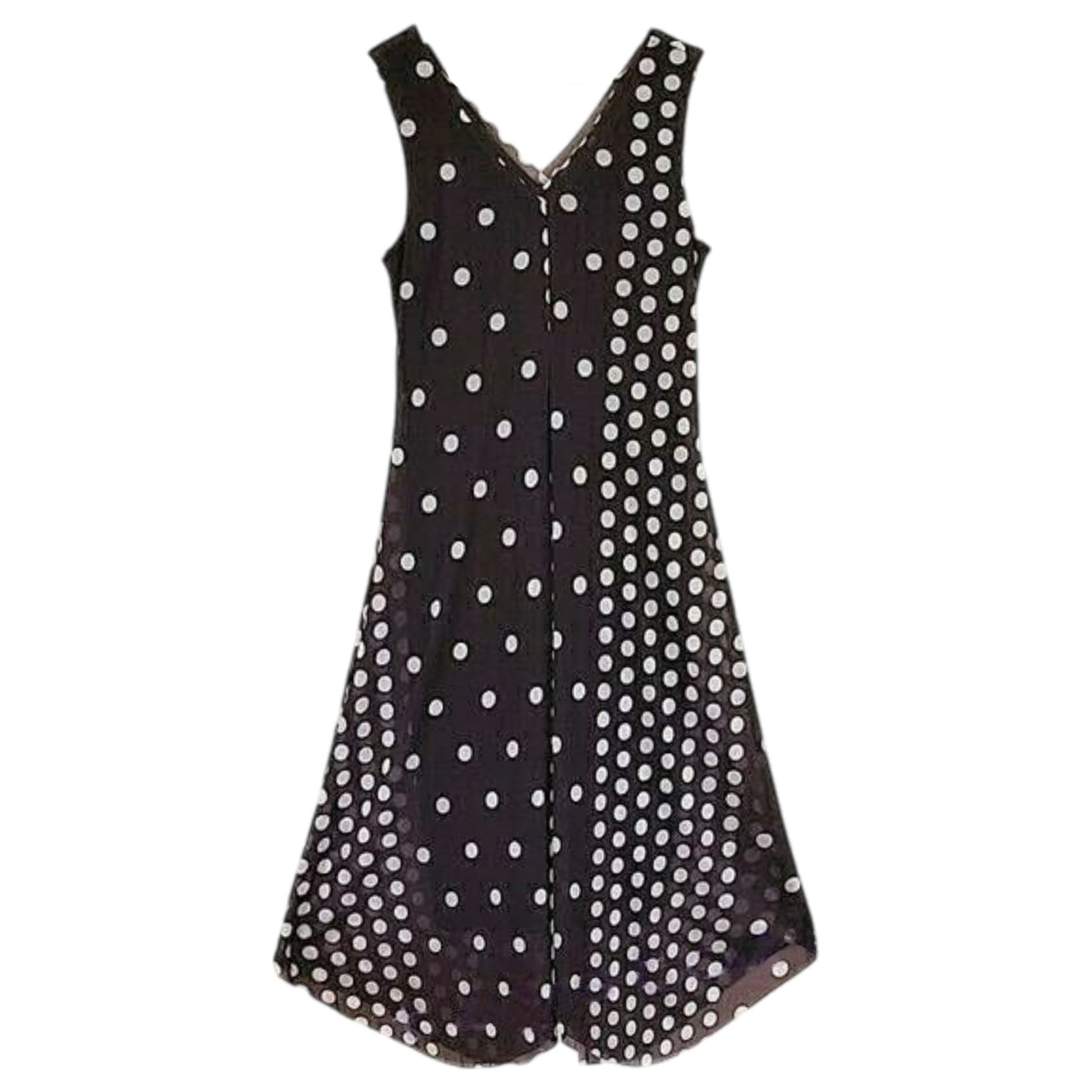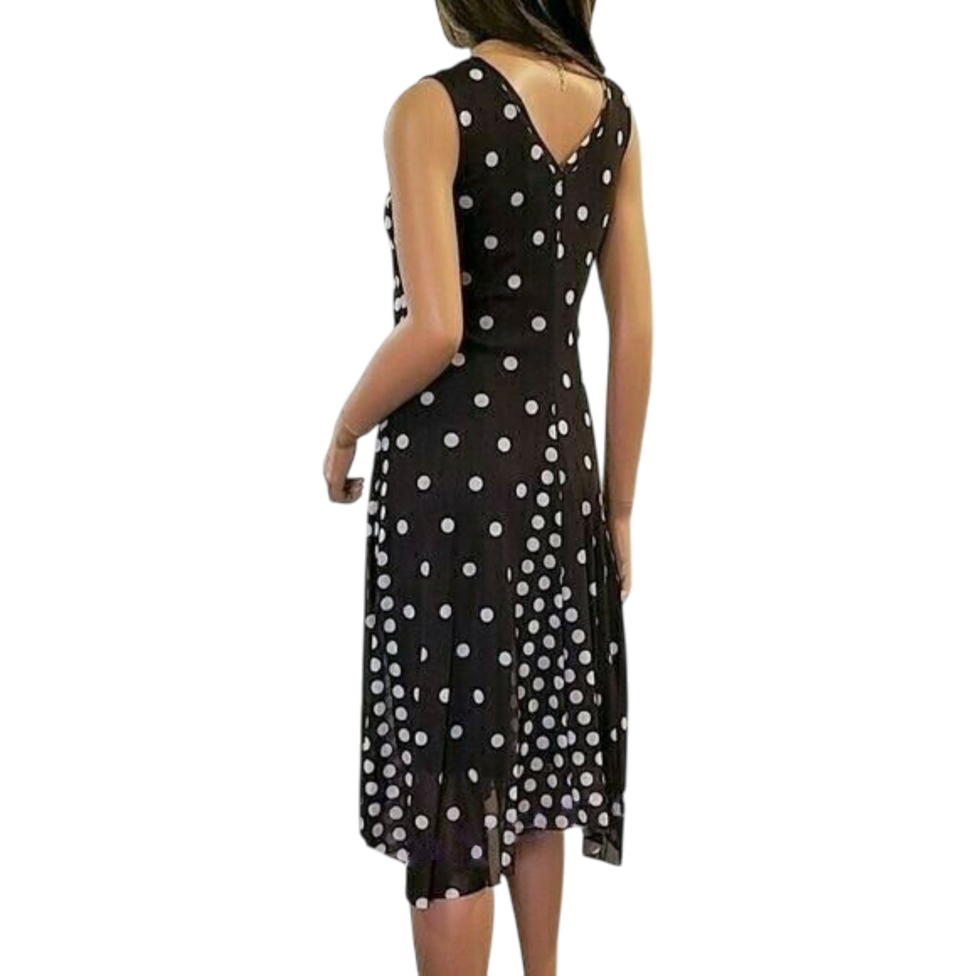 T TAHARI Women's Polka Dot Print Sharkbite Hem Mesh Overlay Midi Dress