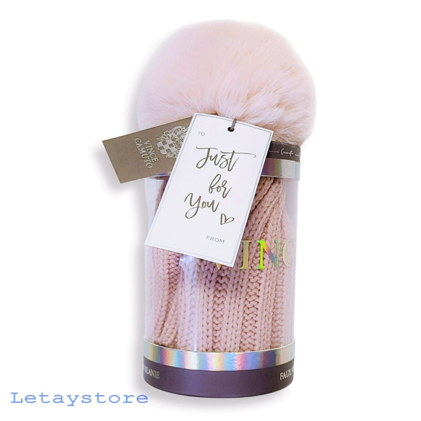 Stay warm and stylish with this Vince Camuto Women's Beanie Hat featuring a soft faux fur pom and gift box. Perfect for those chilly winter days, this beanie will keep you fashionable while keeping your head and ears toasty.