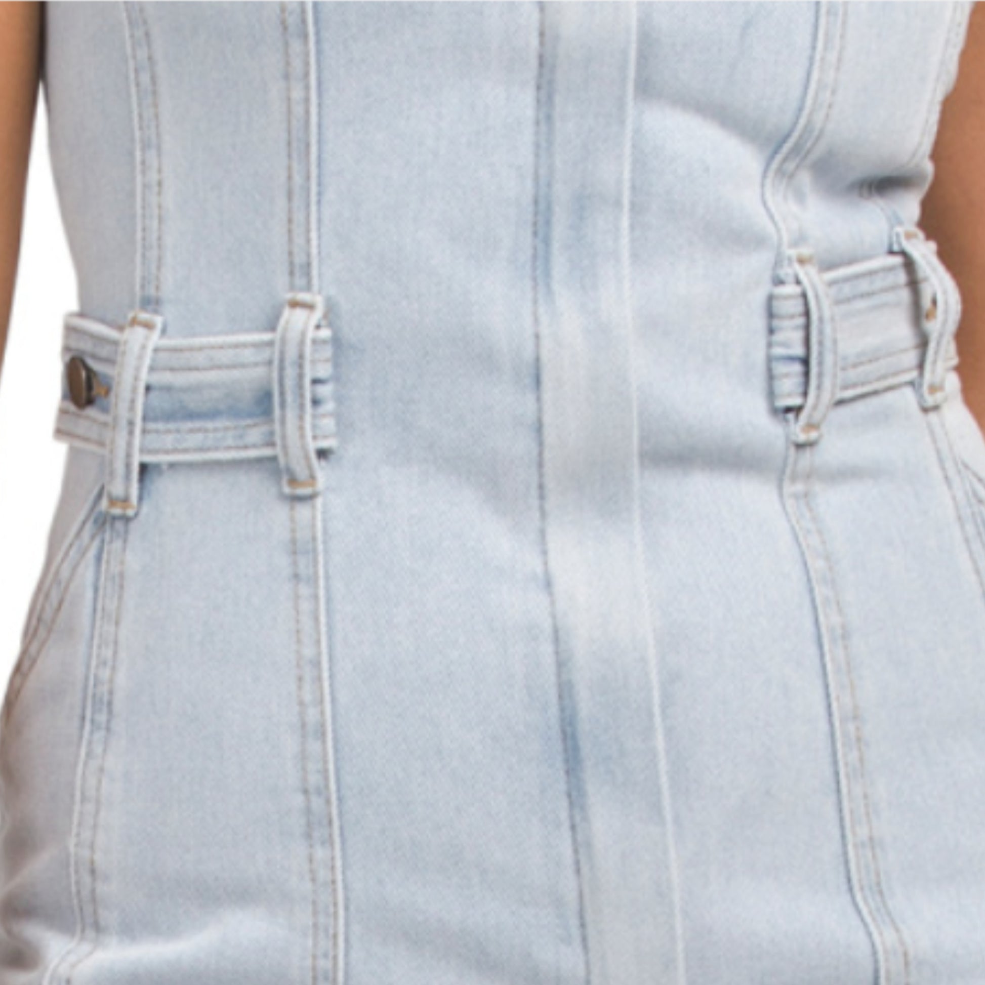 This sleeveless denim mini dress from On Twelfth features a convenient front zip closure, making it easy to wear while offering a flattering silhouette. Its classic denim fabric is durable and stylish, perfect for casual outings or layering for a chic look. The mini length adds a youthful, fun touch, making it a versatile wardrobe staple that supports confidence and comfort throughout your day.