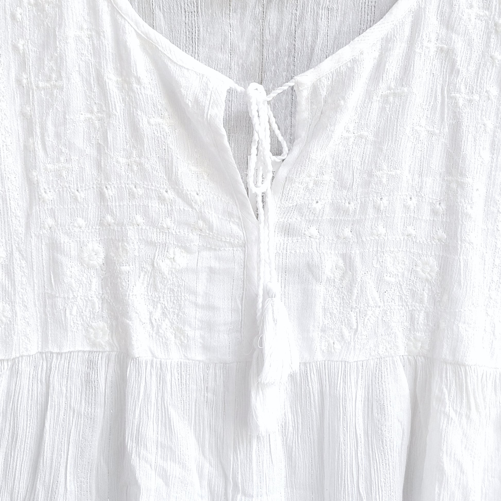 Embrace some carefree sunny days with this flowy romantic style embroidered top from Rachel Roy. Featuring an embroidered yoke and shimmering metallic accents, this lightweight tunic top is perfect for breezy days and playful nights. Its airy fabric keeps you comfortable while the unique details make every outfit shine. Effortless style meets fun flair in one fabulous piece!