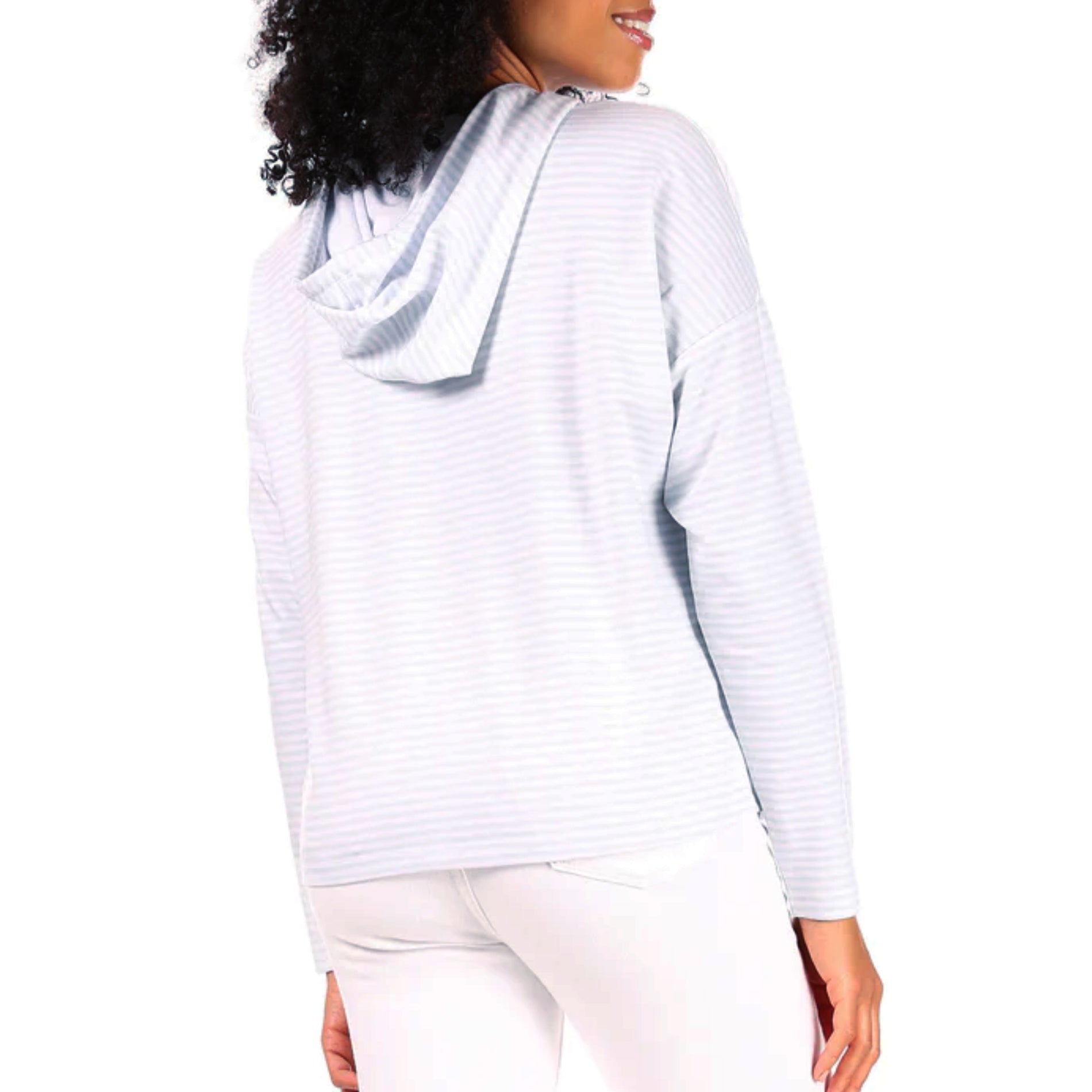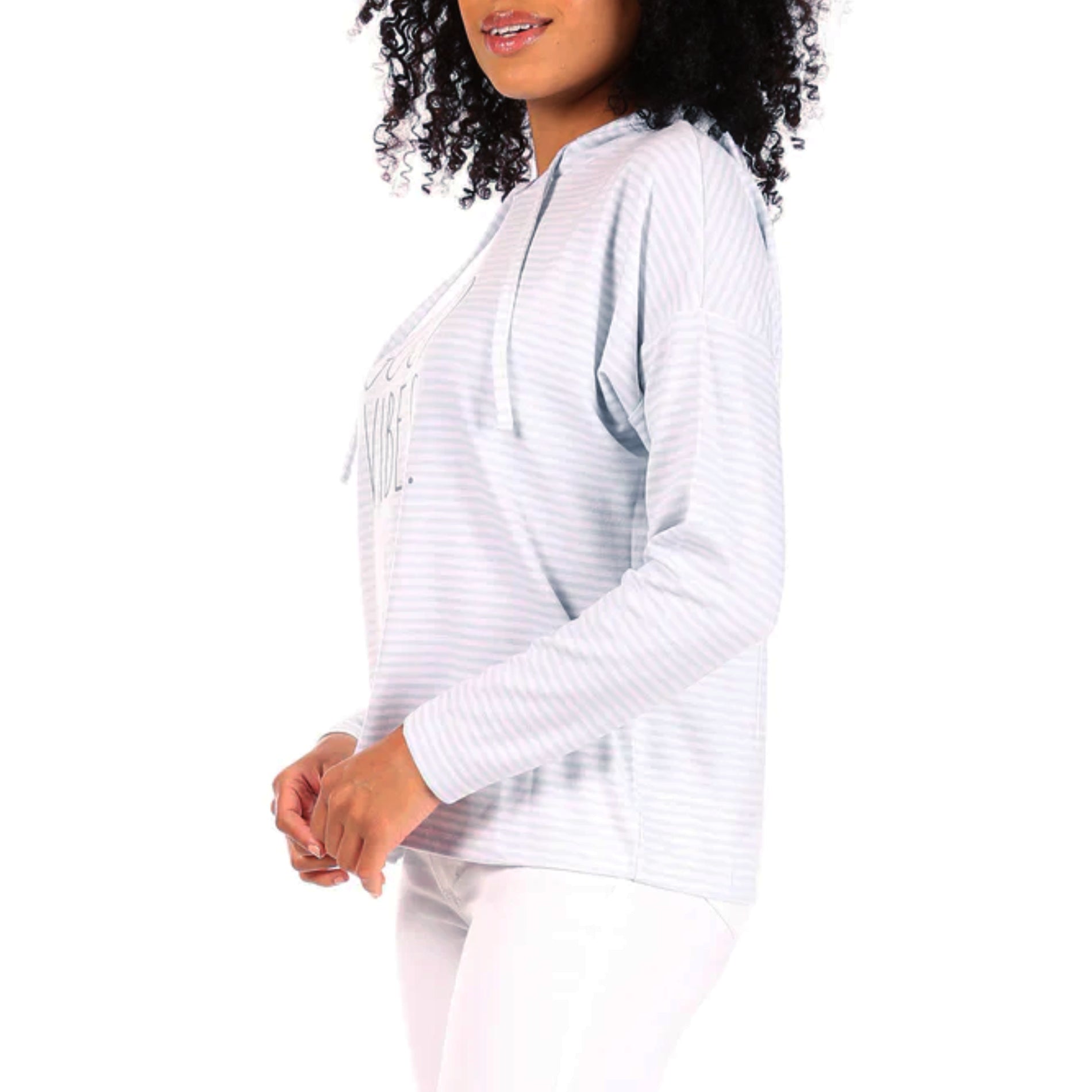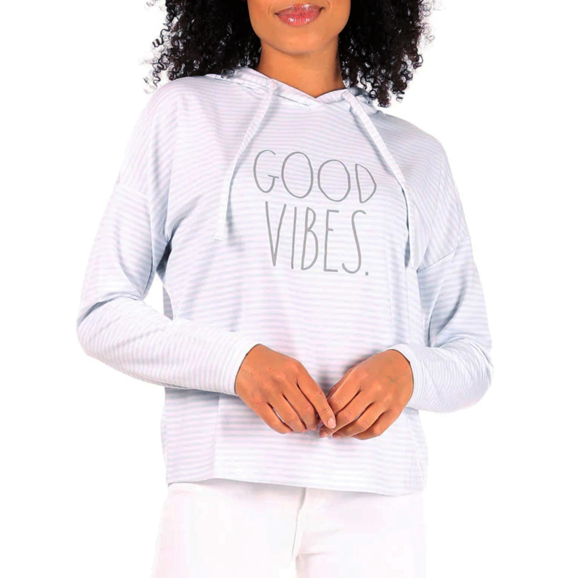 Rae Dunn Women's Ultra Soft Good Vibes Graphic Print Striped Sweatshirt Top Hoodie