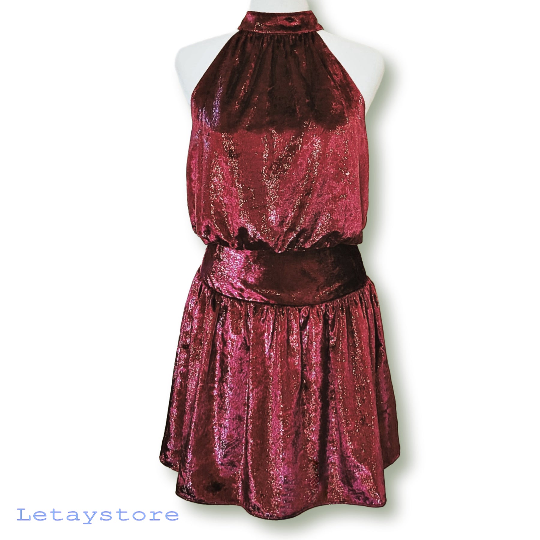 RAMY BROOK Women's Ellin Shimmer Velvet Halter Party Cocktail Mini Dress