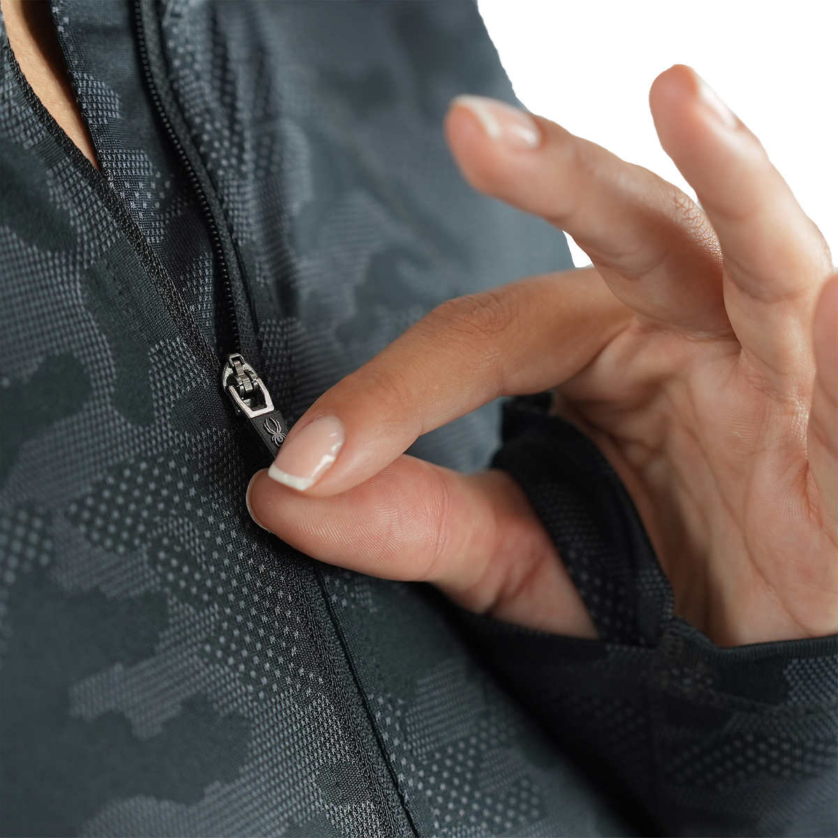Stay comfortable and focused during your next workout with Spyder's Tech Soft Quarter Zip Active Top. Made with moisture-wicking technology and convenient thumbholes, this top provides maximum performance and comfort. Perfect for any active woman.