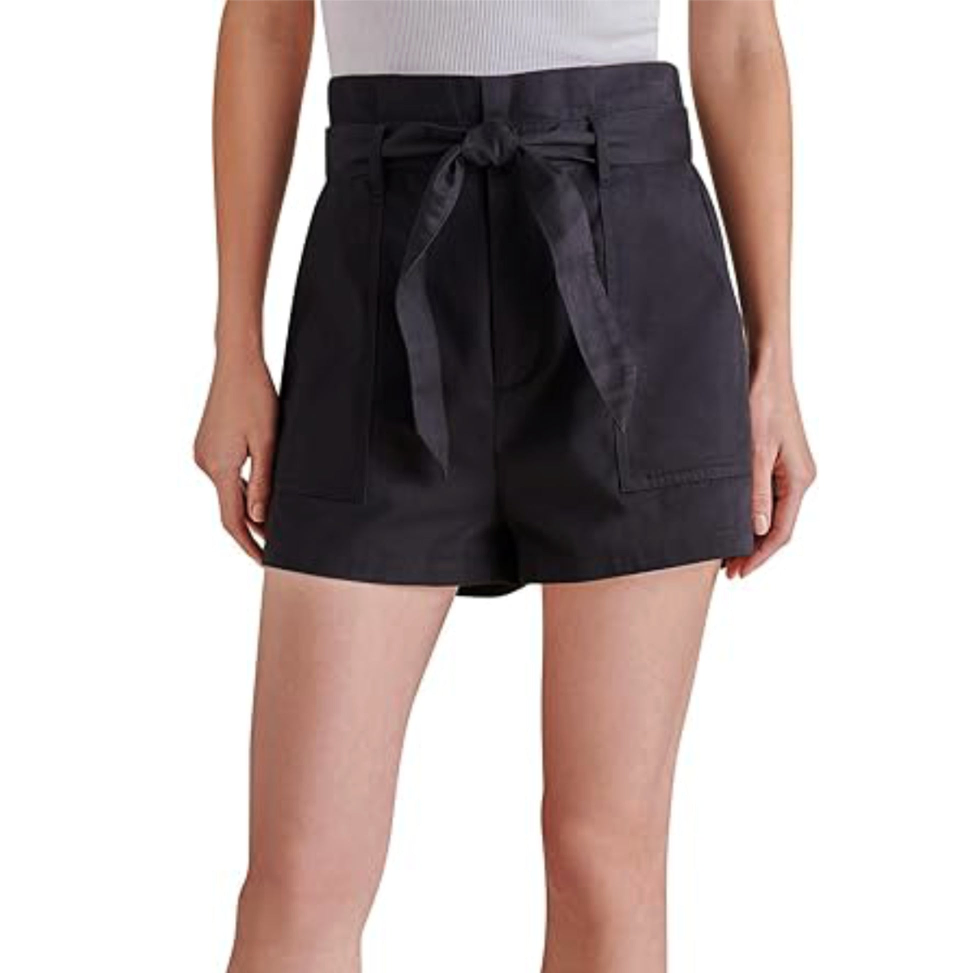 Steve Madden Women's High Rise Paper Bag Brushed Twill Cinch Shorts
