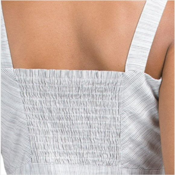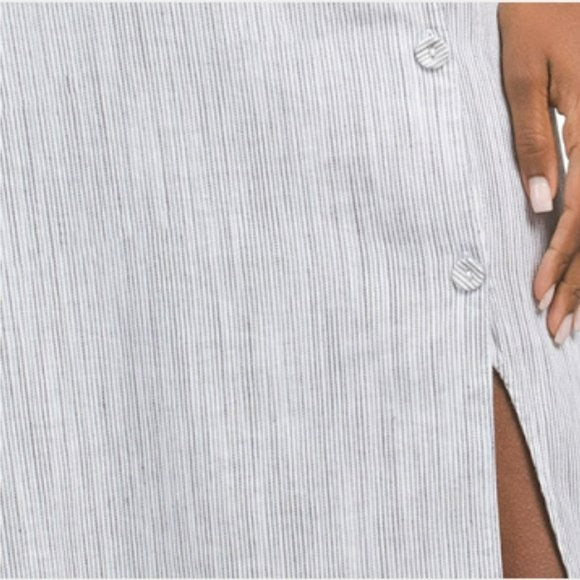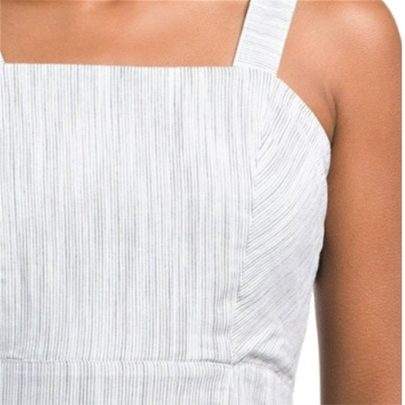 Tahari Linen Strappy Button Closure Stretch Striped Midi Dress