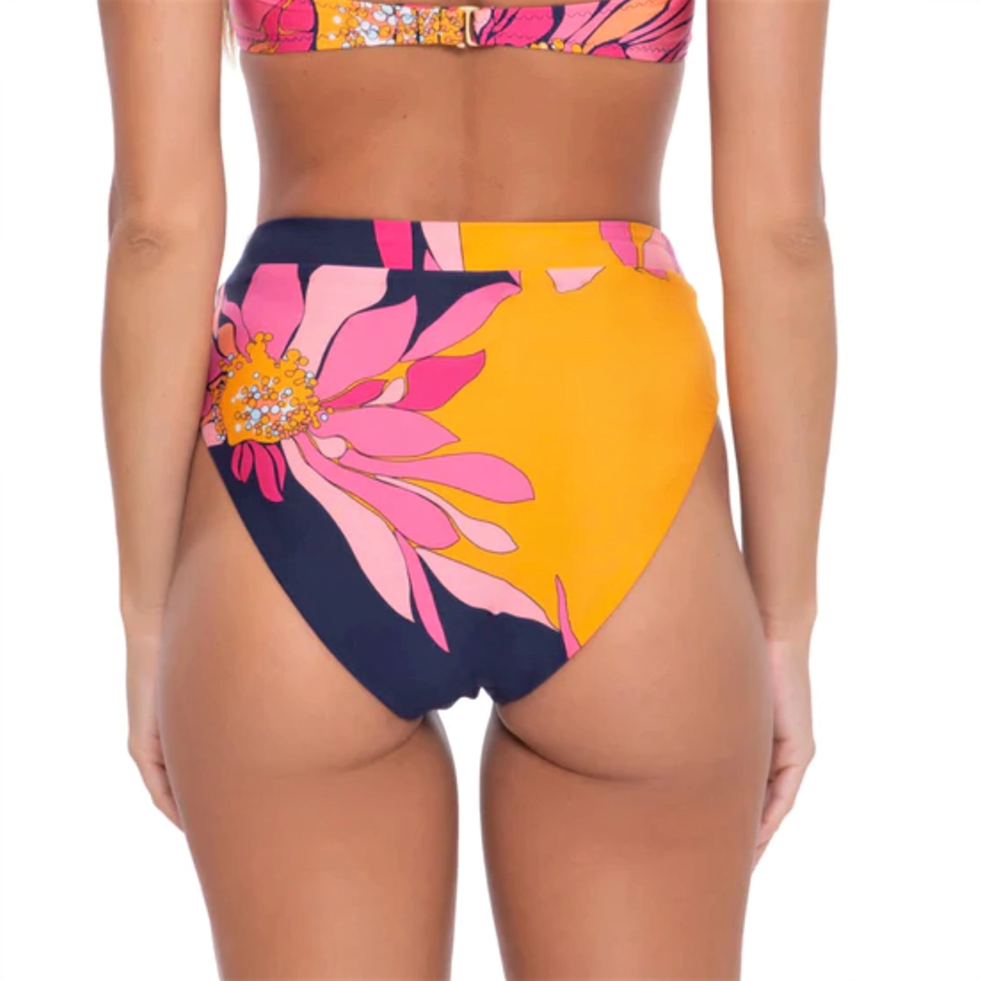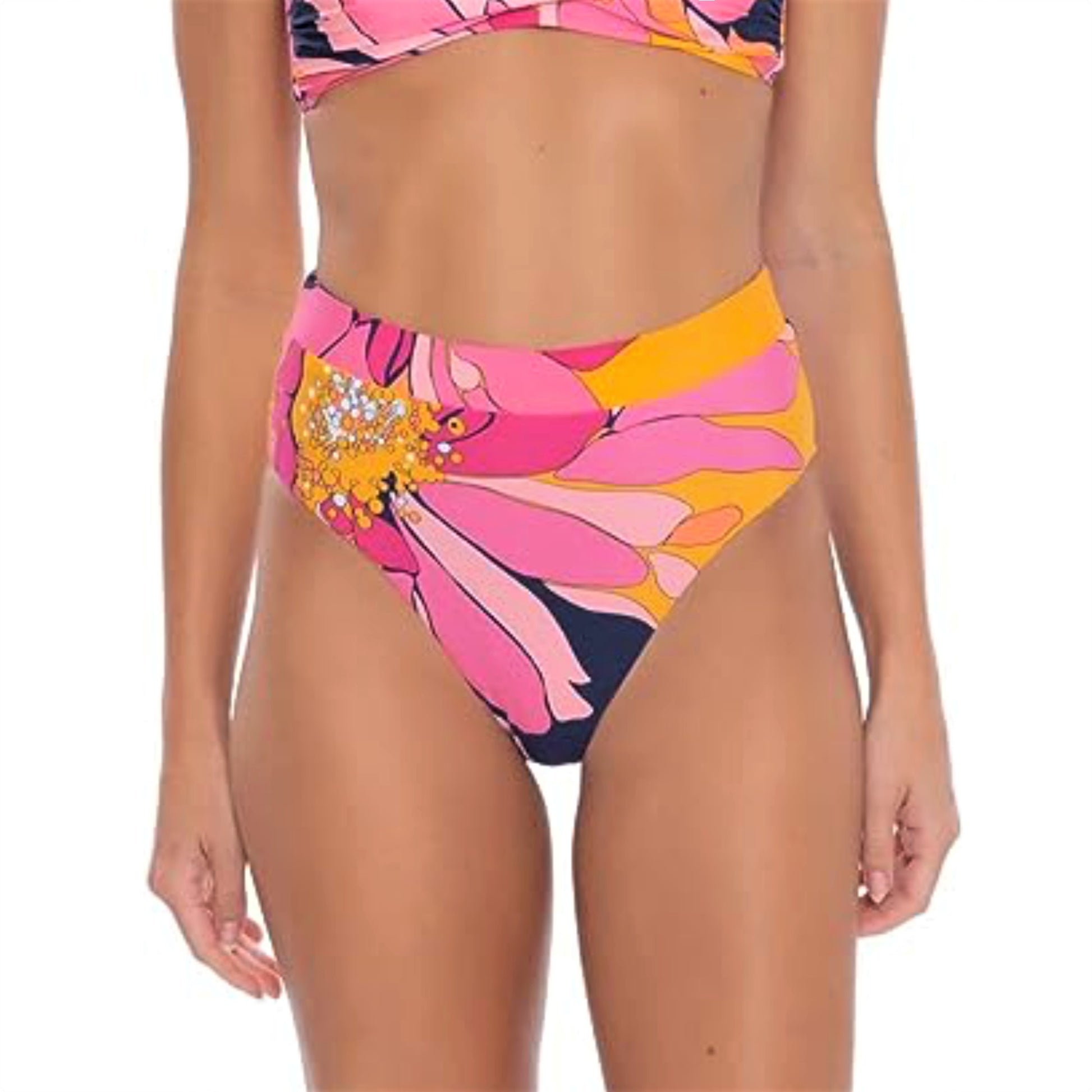 This collection from Trina Turk features a bandeau-style swim bra and high-waisted bikini bottom, both made from a soft, stretchy nylon-spandex blend for superior comfort and a flattering fit. These pieces allow for luxury style in and out of the water. Resort-ready and perfect for your next getaway, pair this colorful swim bottom and matching bikini top to brighten up your swim collection.