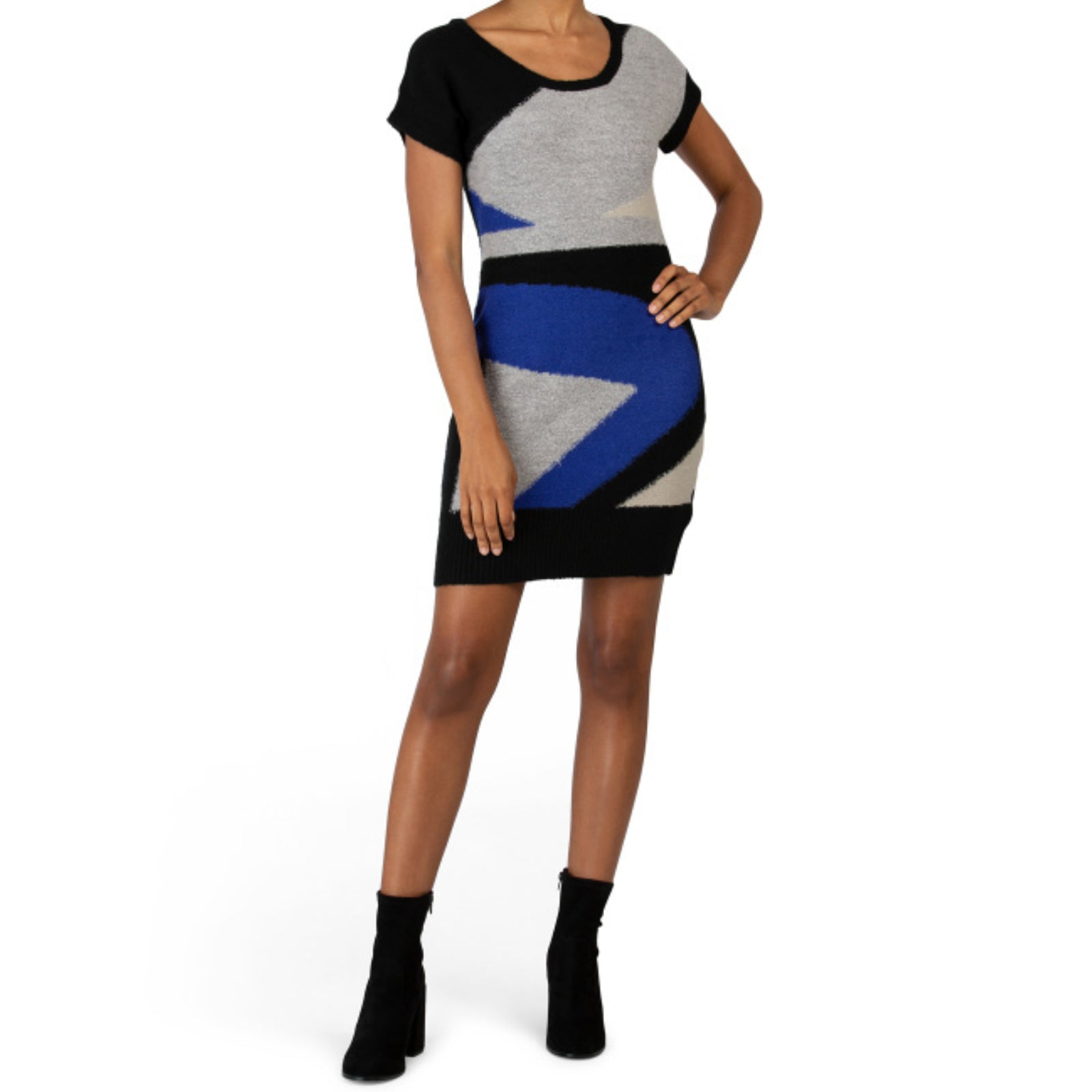 This geometric Colorblock knit dress has a lot of style! You can't go wrong with this option, this dress can be transformed for any occasion with the addition of accessories and shoes.