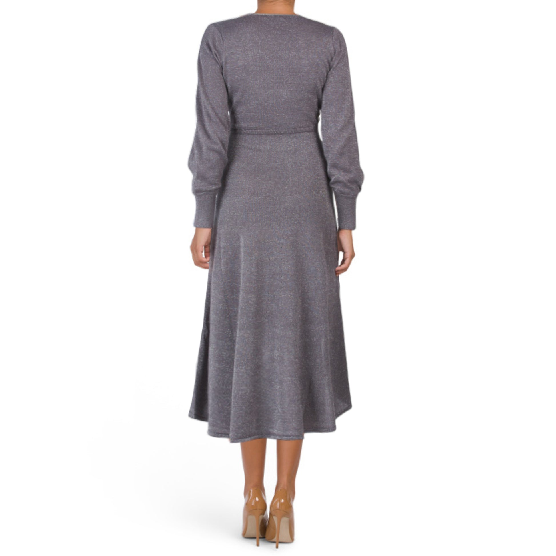 Celebrate your special night in this beautiful Vertigo Paris dress featuring a surplice neckline, split sleeves and a hi-low hem for a chic party look. Its metallic shimmer finish and figure-flattering fit make this dress a must-have. This midi dress will be sure to make heads turn. The perfect combination of style and class.