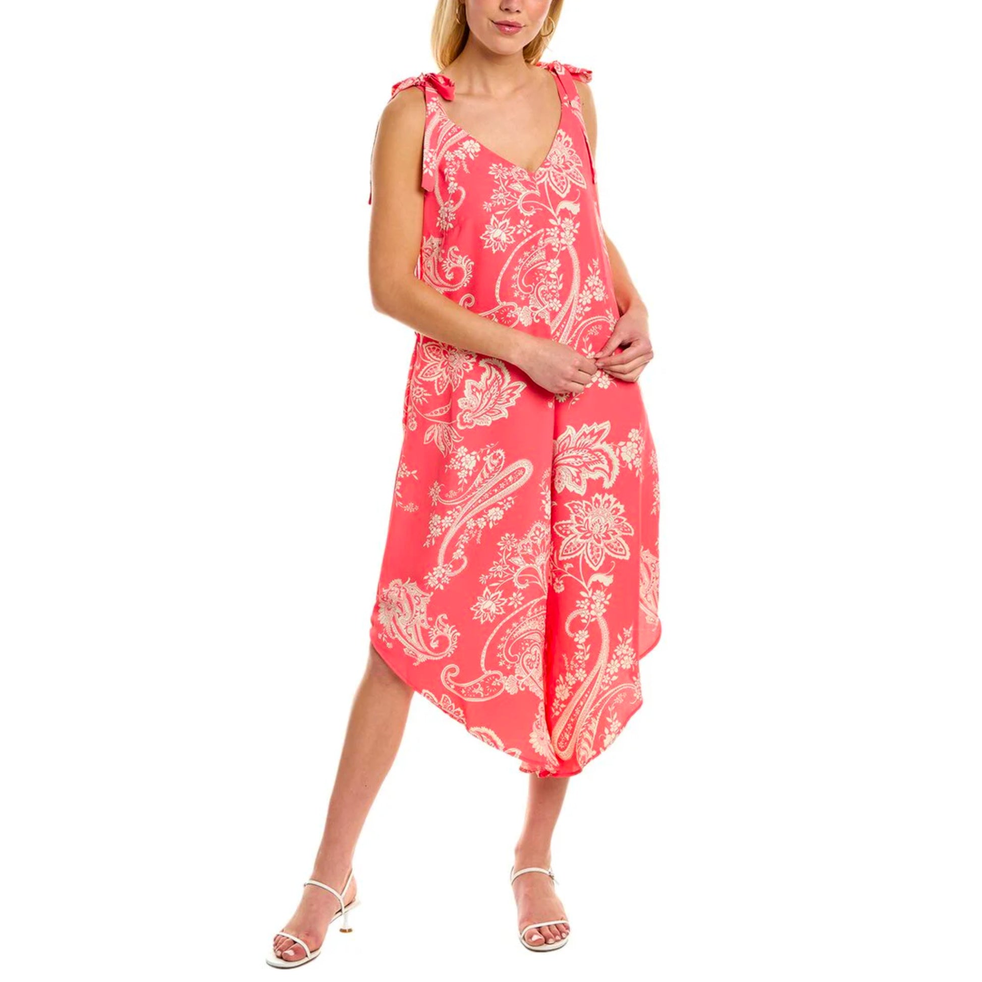 Vince Camuto Women's Paisley Print Bow Tie Strap High-low Leg Jumpsuit